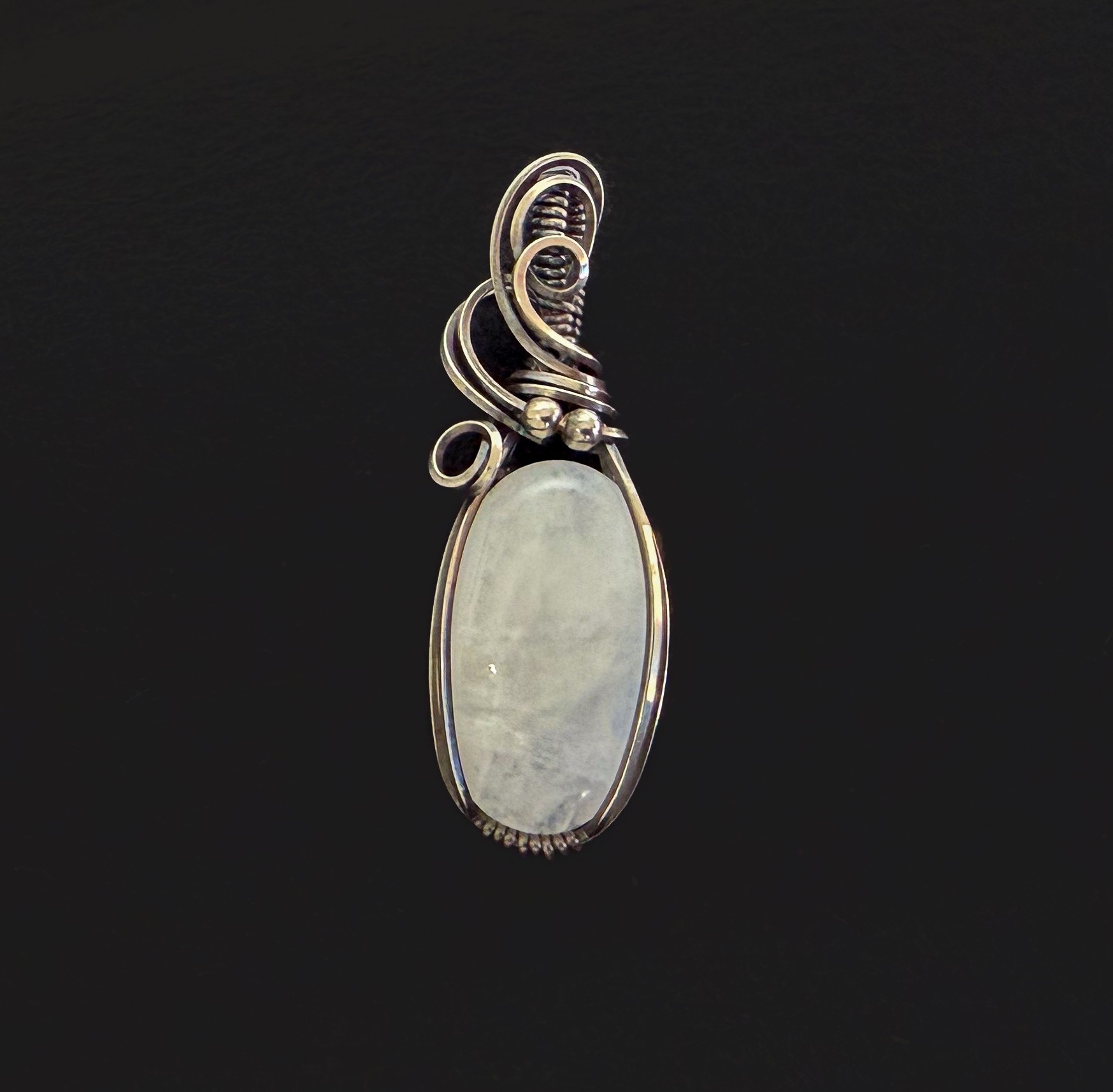 - Moonstone wire-wrapped in silver-filled wire