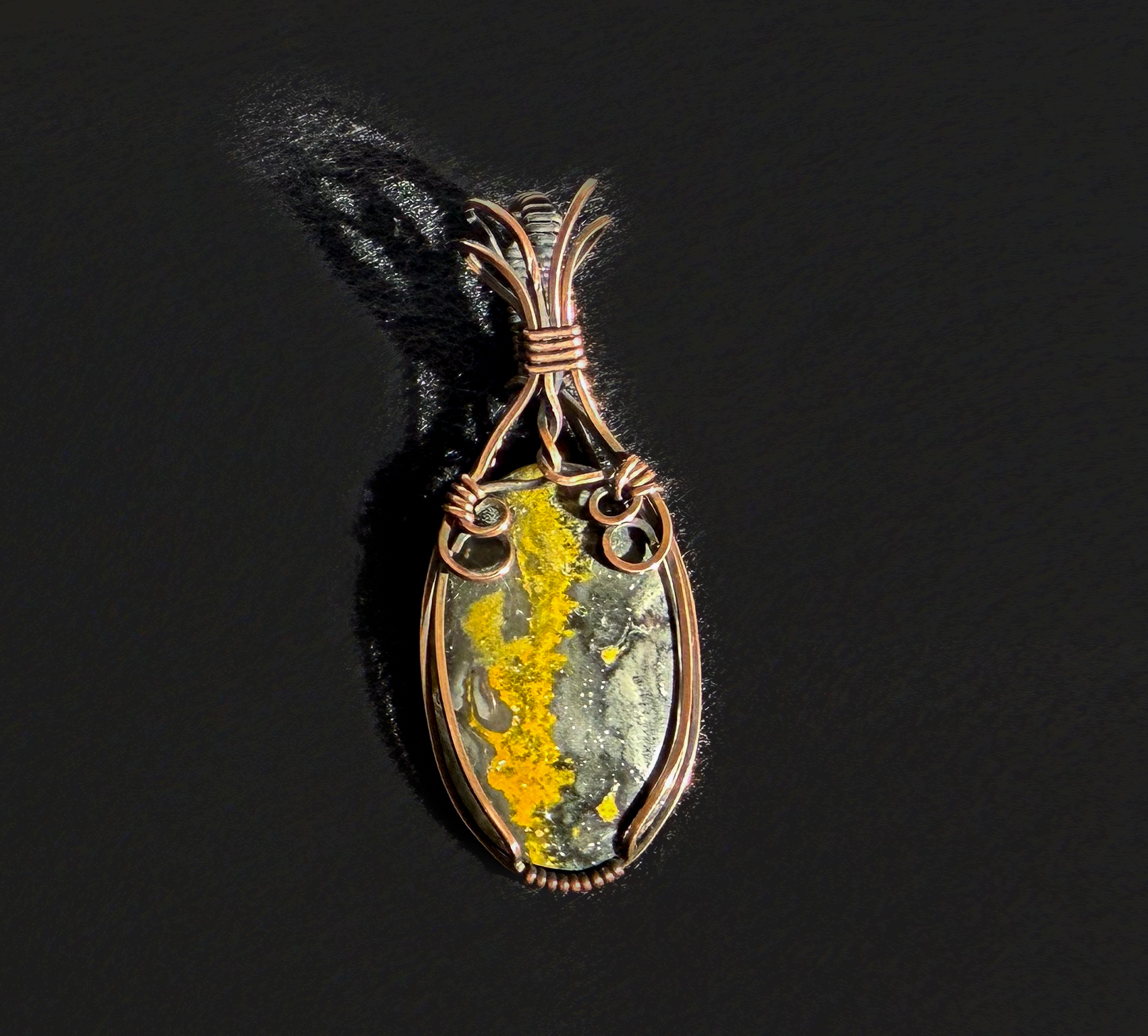 Home / Pendants / Bumblebee Jasper Stone Pendant #95 Bumblebee Jasper Stone Pendant #95$40.00 Bumblebee Jasper stone pendant Oxidized copper wire wrap Length from top of pendant is 2 1/2″ Width is 7/8″ All pendants come with a 20″ nylon cord 1 in stock Bumblebee Jasper Stone Pendant #95 quantity Add to cart SKU: 00095 Category: Pendants