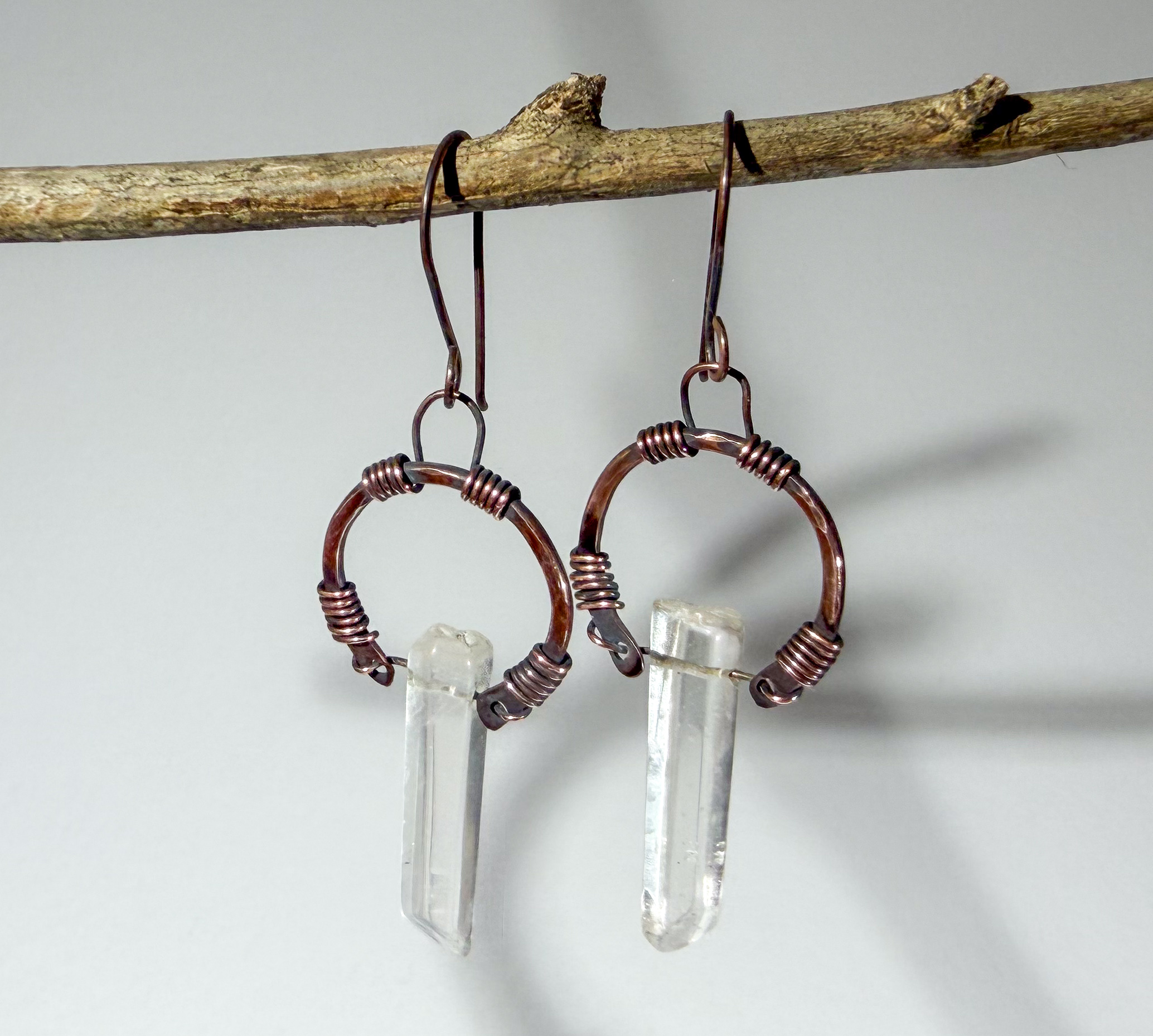 Copper Circle Earrings with Crystal Points #395