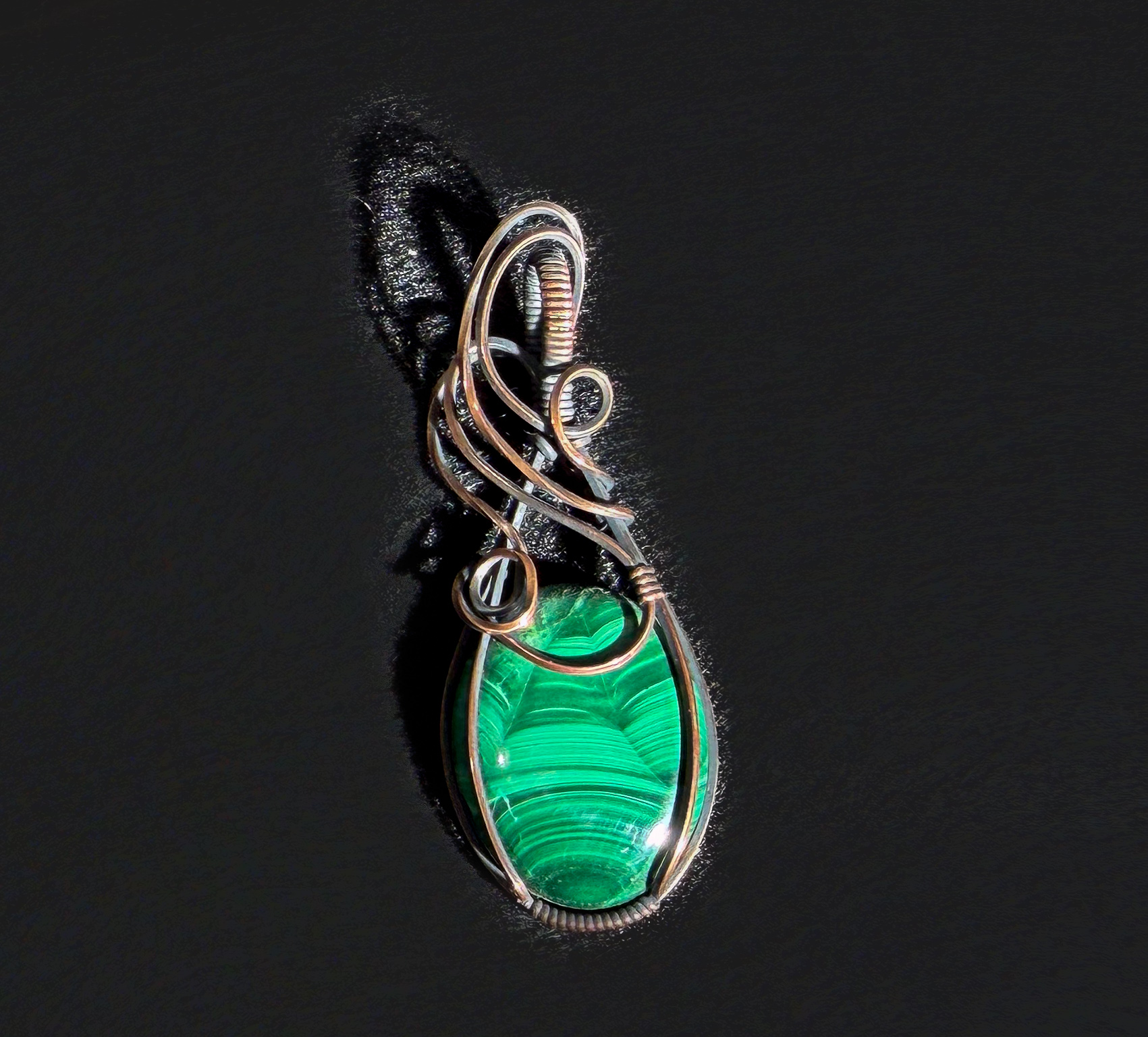 • Malachite stone wire-wrapped in copper