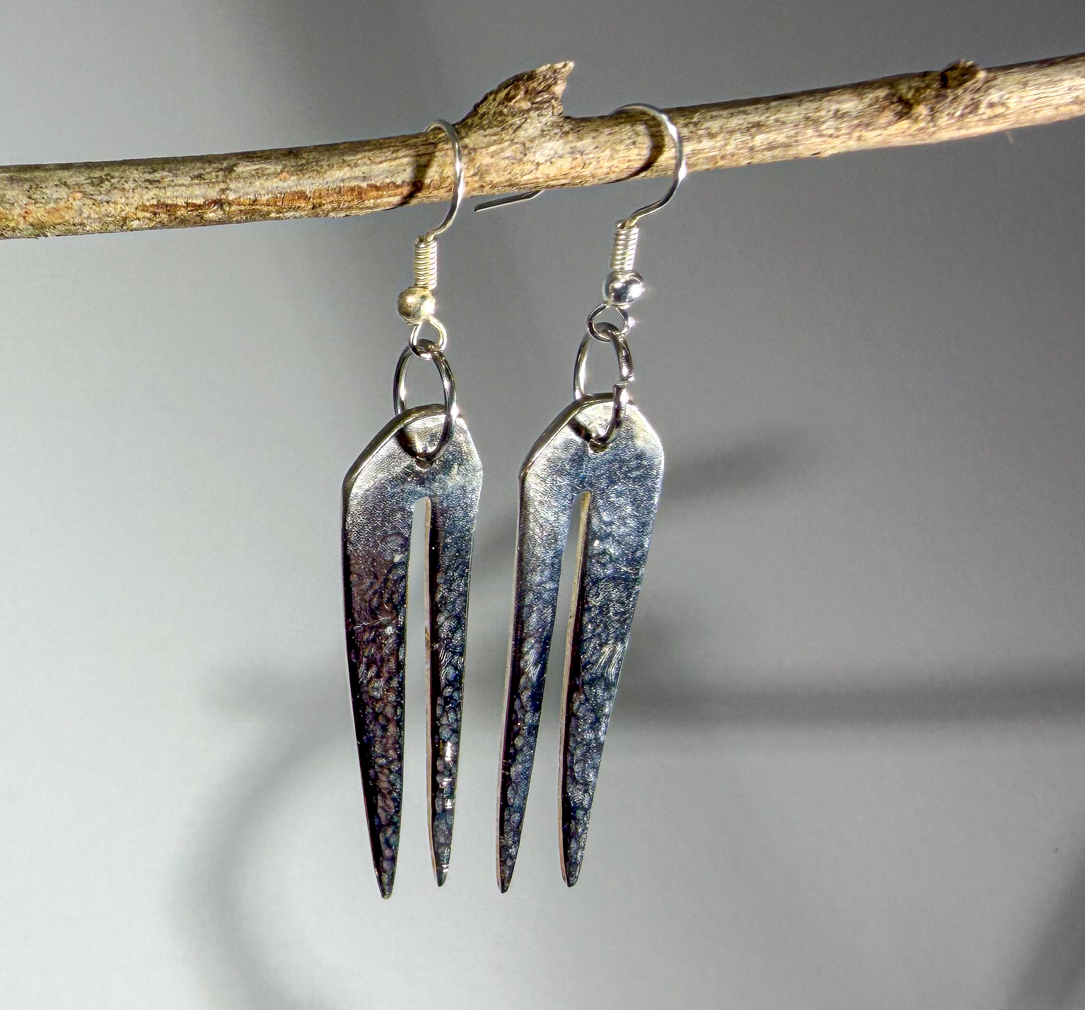 Home / Earrings / Silverware Earrings #292 Silverware Earrings #292$25.00 Unique fork prong earrings! Made from silver-plated forks Size from top of ear wire to bottom of earring: 2 1/8″ Width: 1/2″ 1 in stock Silverware Earrings #292 quantity Add to cart SKU: 292 Category: Earrings